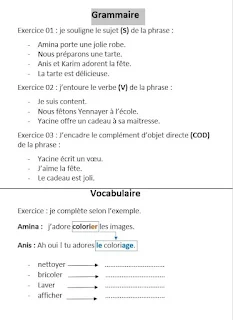 Je pense qu'on doit faire une séance de Grammaire qui traite les constituant de la phrase ( S - V - COD) afin que les élèves puissent écrire la production écrite